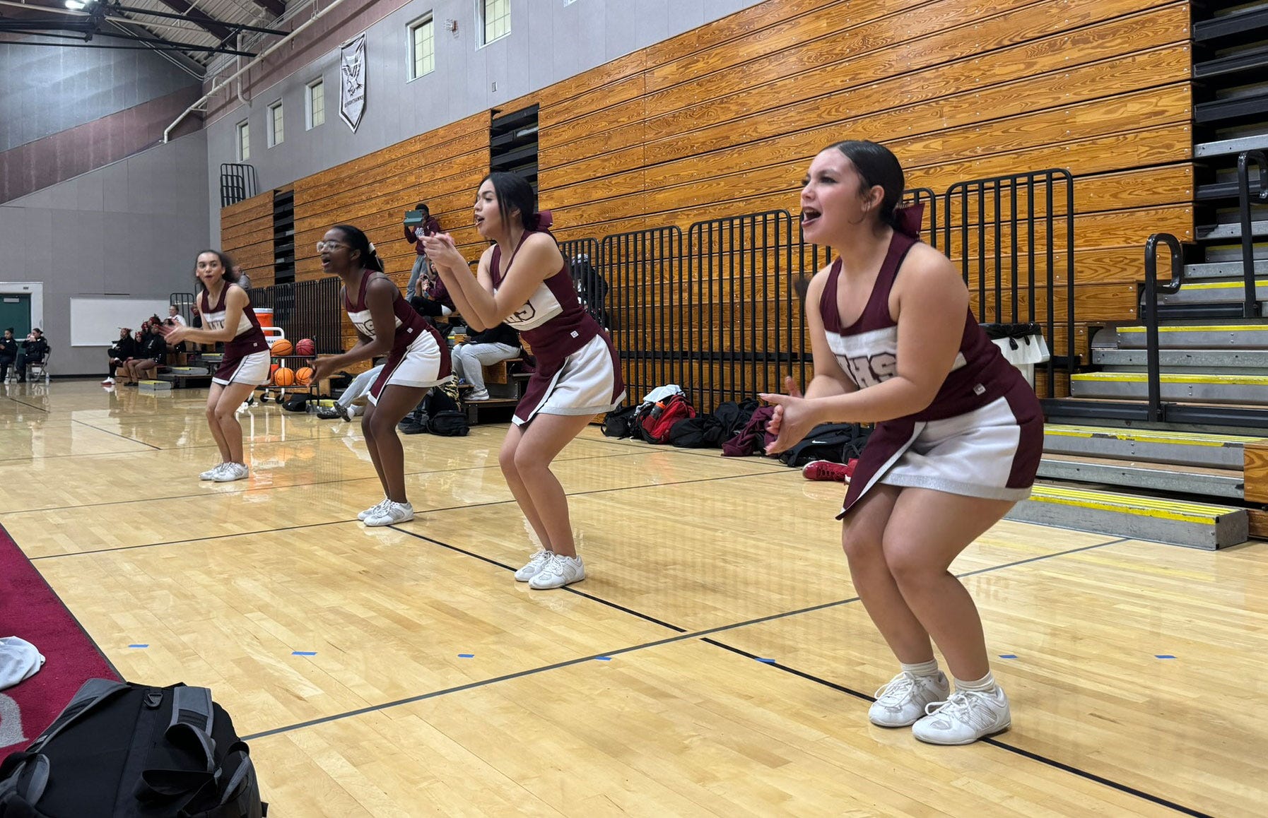 A month later, Natomas boys basketball is playing its final home game before campus closes for the holidays. Lauryn is caught up on statistician duties during a timeout so she joins her cheer teammates. Lauryn hits all the steps and chants in street clothes.