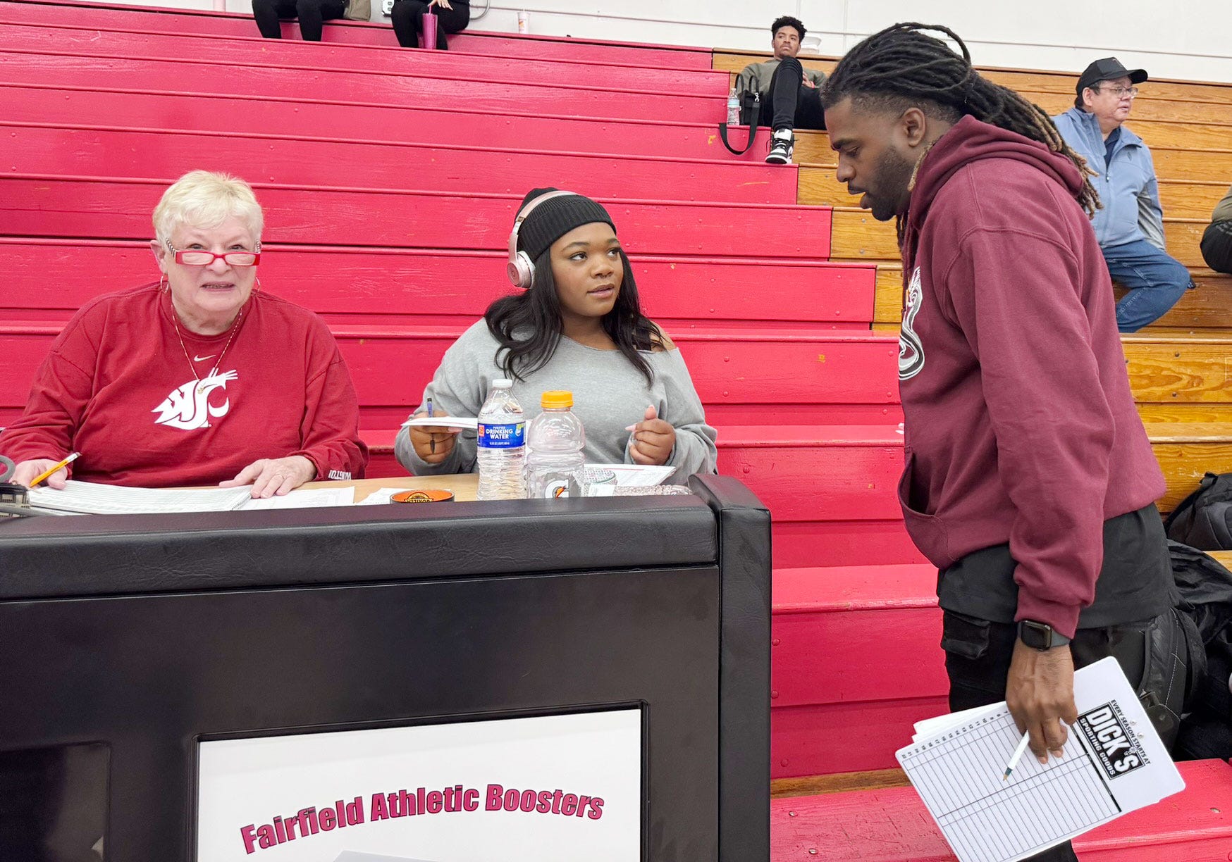 Before the game, she is responsible for checking rosters with officials and coaches. During the game, Natomas coaches rely on her to know how many fouls each player has acculumated so they can make the proper substitutions. After the game, she turns over her game book to McKenzie, who notes statistical trends.